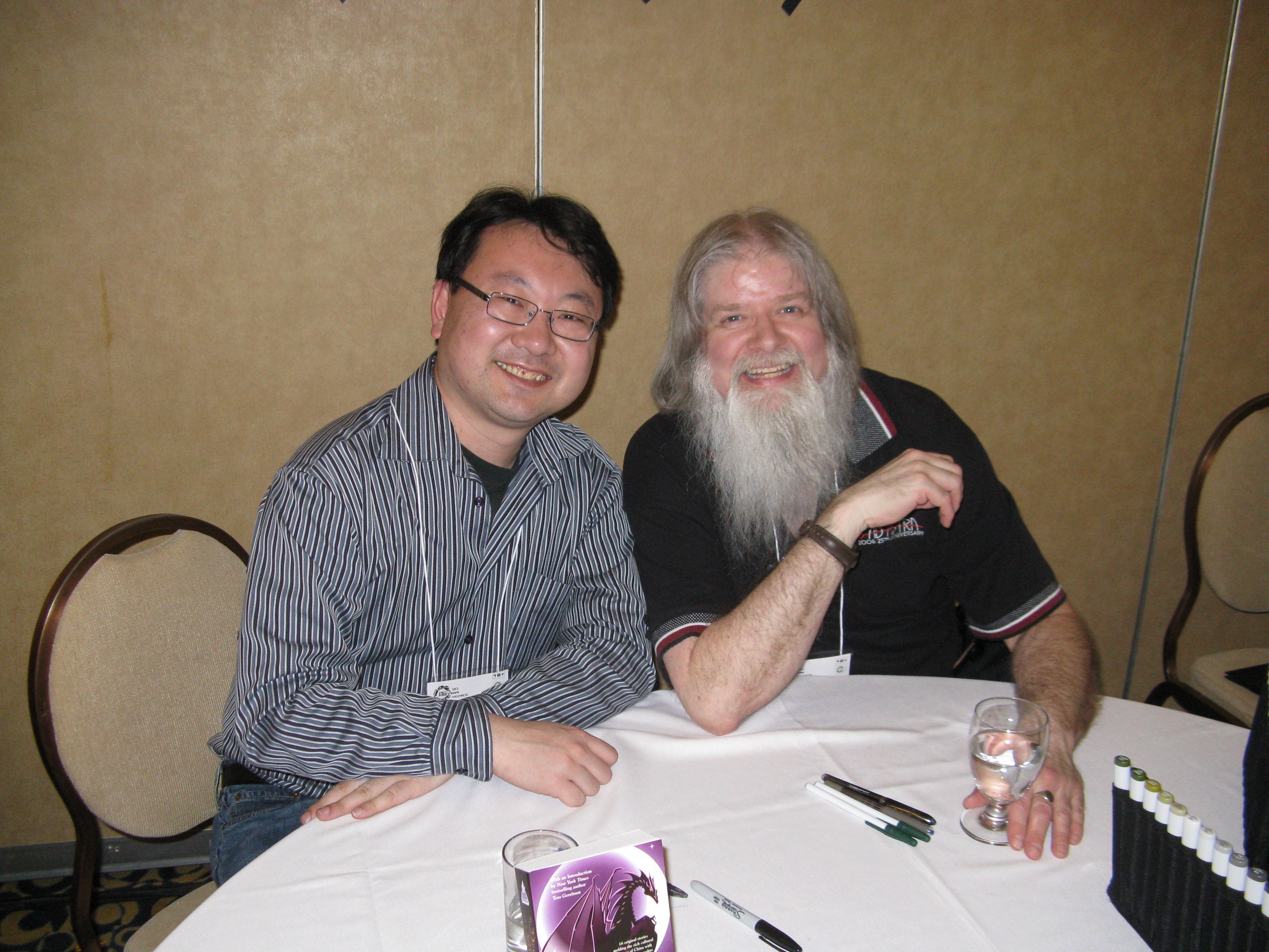 So I was at Ad Astra over the weekend and had a great time. This sketch of me is courtesy of Howard Tayler of Schlock Mercenary fame, whom I sat with during the autograph session. Thanks, Howard! I also sat with Ed Greenwood, and we chatted about the Forgotten Realms and novel-writing. Ed’s also a co-editor on WHEN THE HERO COMES HOME with Gabrielle Harbowy.